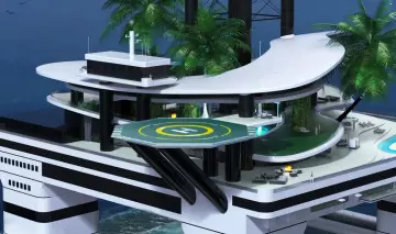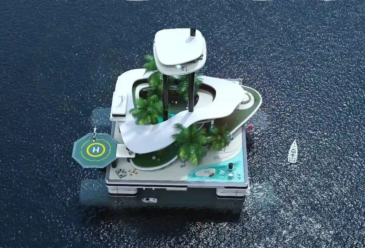 This gigantic project is based on one of the safest platforms available in the high-tech oil industry. It is designed to be a luxury hideout for the owner and family, featuring ample amenities and outdoor space to create the feeling of being on a private island.