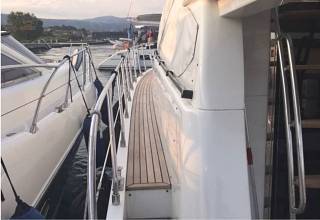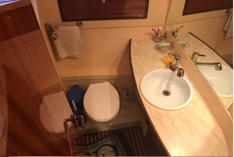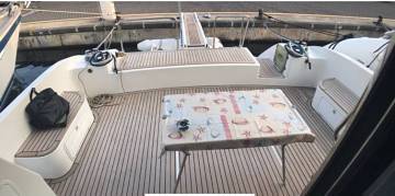 Ausstattung:Eignerkabine, Flybridge, Gästekajüte, Innenfahrstand, Teak auf Badeplattform, Teak auf Gangborden, Teak auf Stufen zur Flybridge, Teak im Cockpit, WC Elektrisch + Waschbecken + Dusche