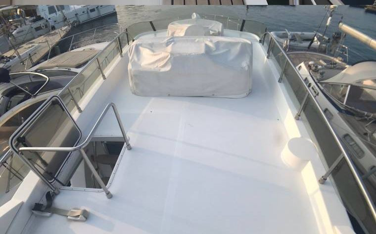 Badeleiter, Badeplattform, Beiboot, Druckwasseranlage, Gangway elektrisch, Hecktür zur Badeplattform, Kombi-Anlage Heizung + Klima, Septiktank, Sonnenpolster auf Vorschiff, Trimmklappen el./hydr., Unterwasseranstrich, weitere Extras, Sonnenliegen