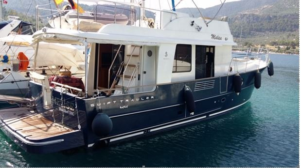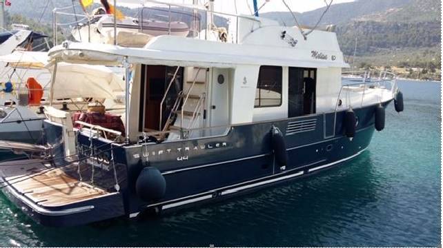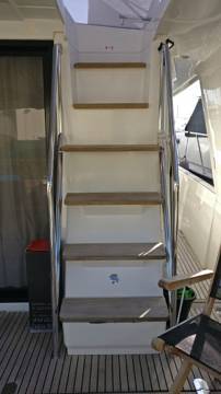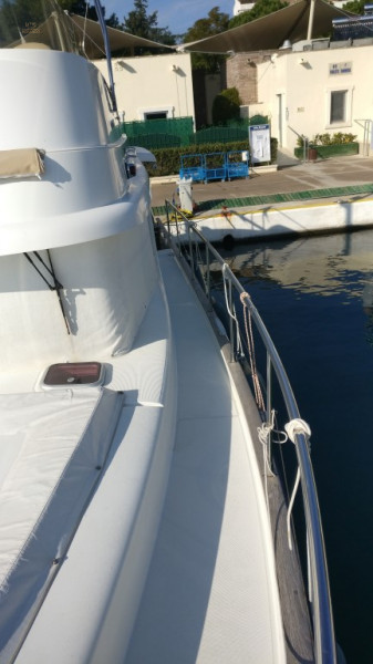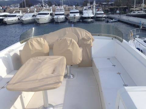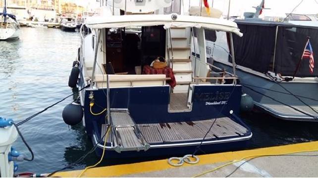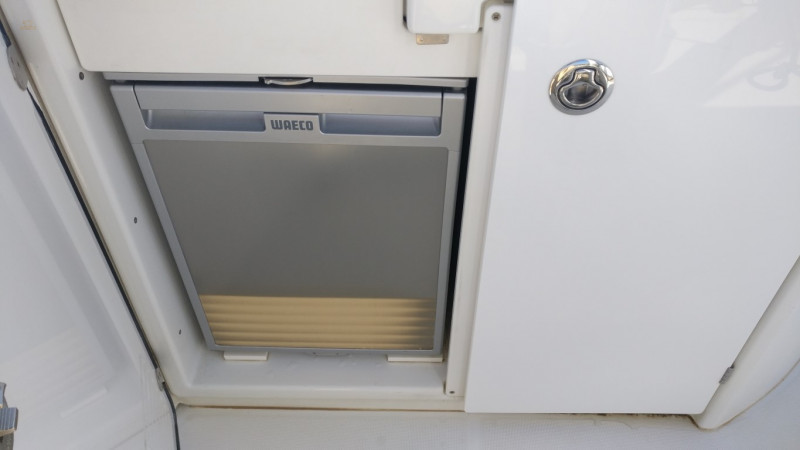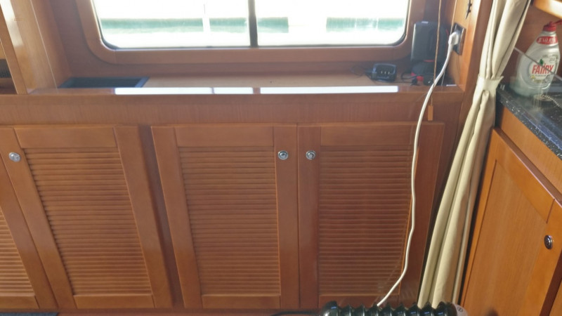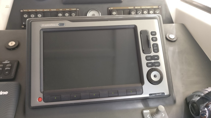 Ausstattung:2. Steuerstand auf Fly, Eignerkabine, Flybridge, Gästekajüte, Geräteträger klappbar, Innenfahrstand, Salon, Teak im Cockpit, WC Elektrisch + Waschbecken + Dusche