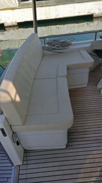 2. Kühlschrank, Aufbereitungsanlage für Seewasser, Badeleiter, Badeplattform integriert, Bugstrahlruder, Farb-TV, Gangway elektrisch, Heckdusche warm/kalt, Heizung, Kombi-Anlage Heizung + Klima, Sonnenpolster auf Vorschiff, Trimmklappen el./hydr., TV Antenne, Unterwasseranstrich