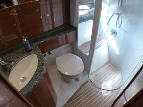 Ausstattung:Bugkabine, Gästekajüte, Geräteträger, Salon, Teak auf Badeplattform, Teak im Cockpit, Teak in Kabine, WC Elektrisch + Waschbecken + Dusche