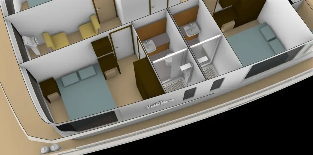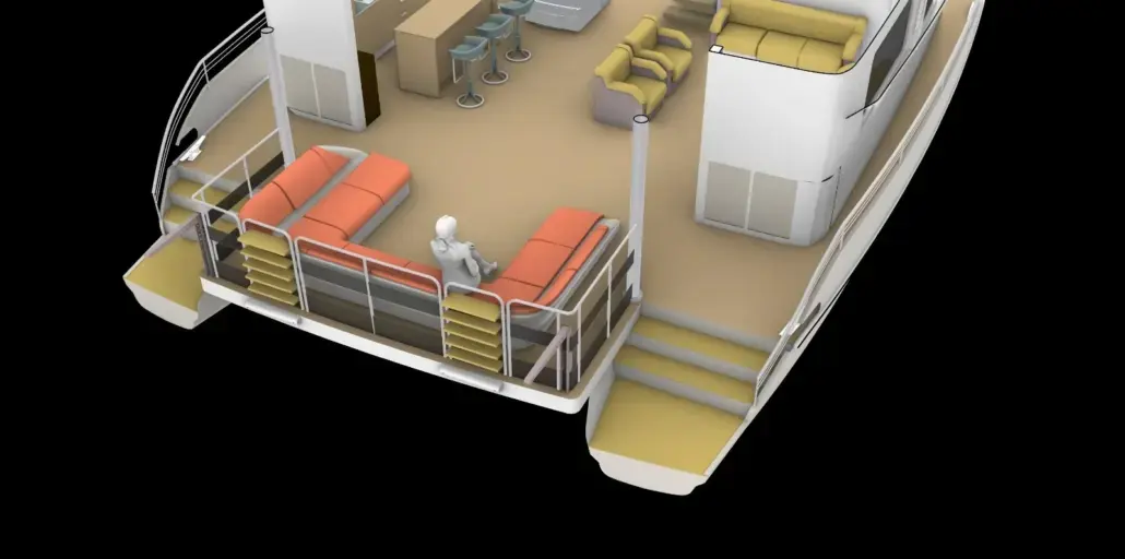 • Propulsion: 2 X 75 hp Volvo – 220 hp Volvo + 20kW hybrid, or fully electric